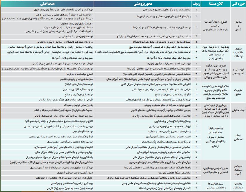 فراخوان اولویت های پژوهشی 1407-1404 سازمان سنجش کشور