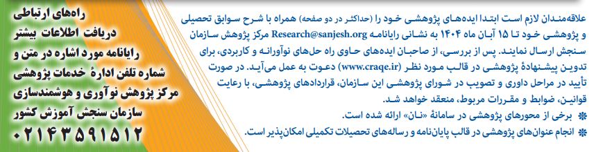 مهلت ارسال ایدههای پژوهشی و فناورانه، ۱۵ آبان ماه میباشد.
